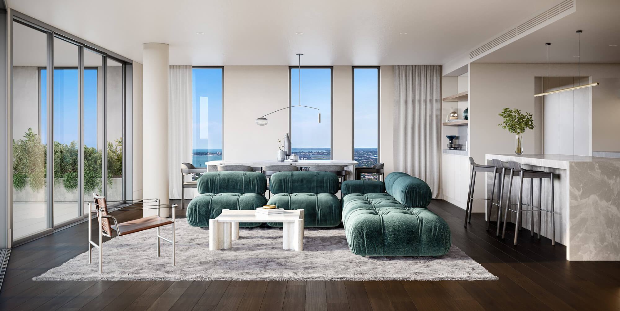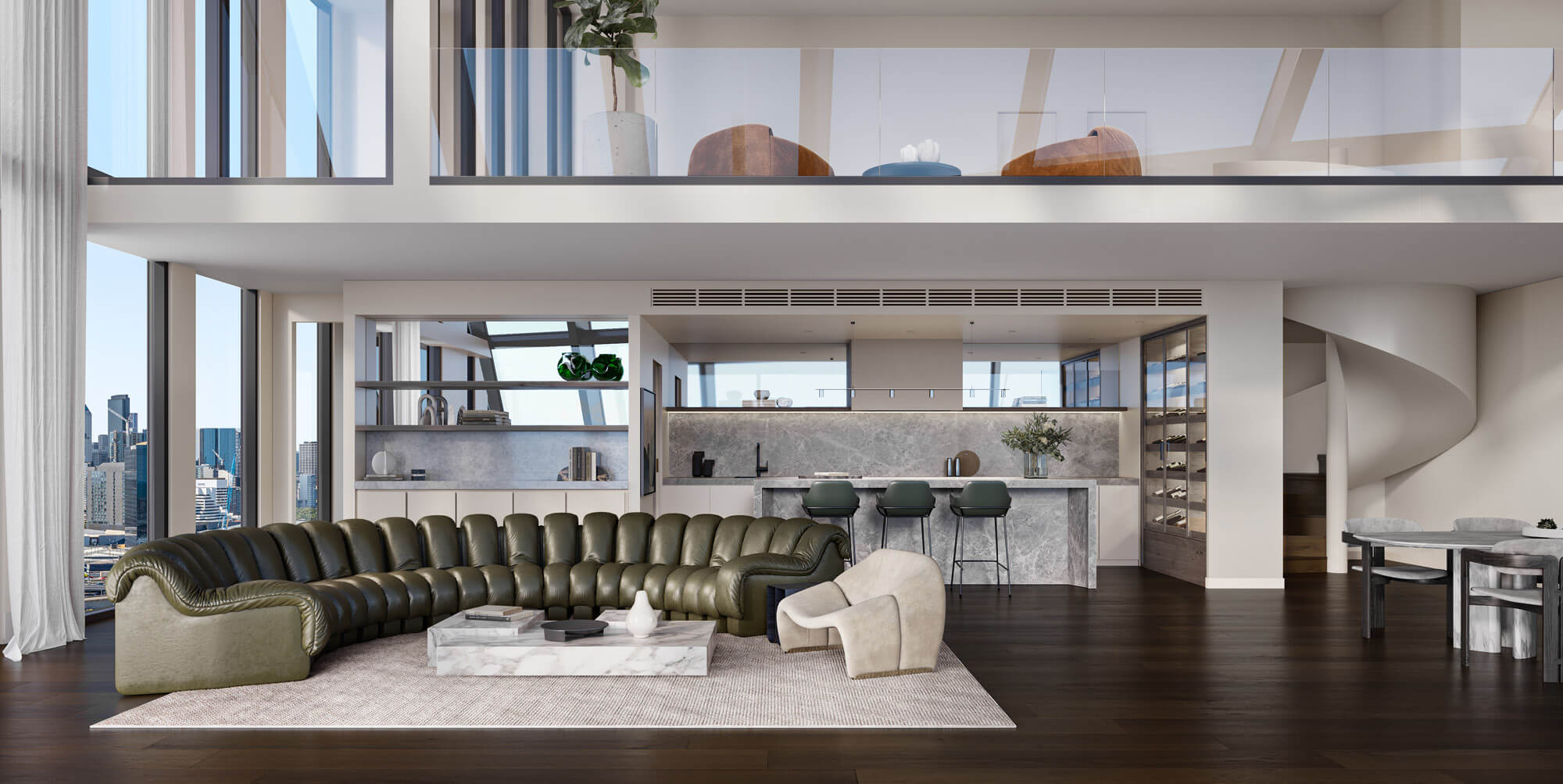 A selection of just 15 sub penthouses & a one-of-a-kind penthouse; set over 2 levels, occupy an exclusive position across levels 25-30. Defined by large terraces, masterful use of proportion and a rich material palette, each 3 bedroom home sits amidst uninterrupted water, park & city views.